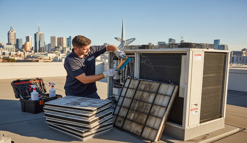 Evaporative cooling systems work by drawing warm outdoor air through water-soaked filter pads, cooling it through evaporation before distributing it indoors. Over time, these pads — along with the internal components and ducts — collect mineral deposits, dust, pollen, and even mould. Melbourne’s weather conditions, which range from dry summers to damp winters, make evaporative coolers particularly prone to this build-up.