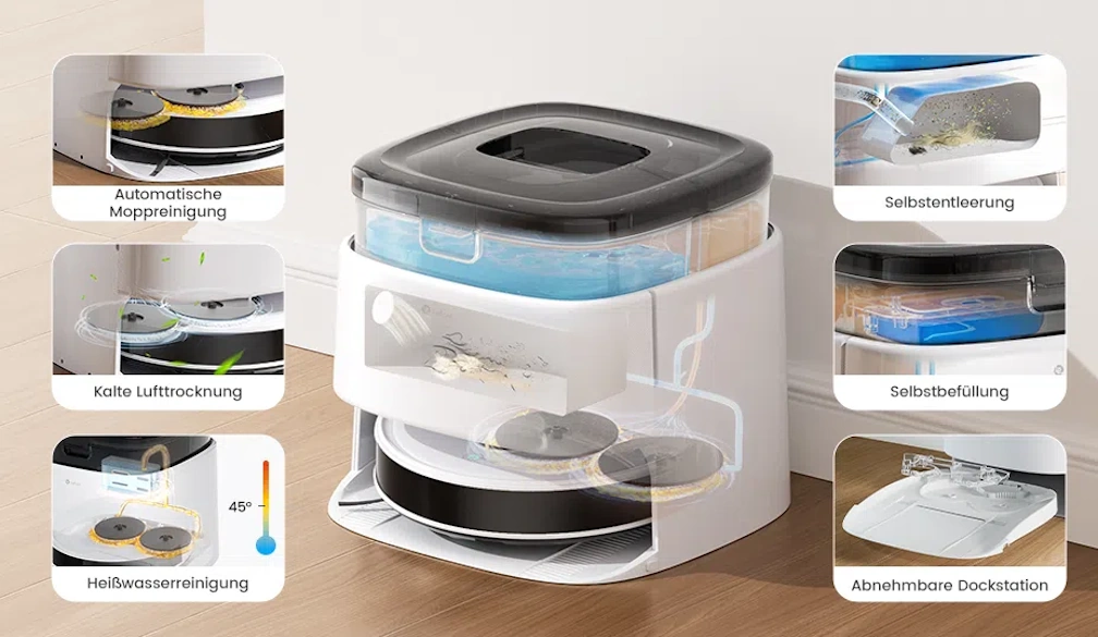 For households with shedding pets, the M3L offers 12,000Pa of suction power and an anti-tangle brush, effectively removing hair from carpets and fine particles from hard floors. Dual rotating mop pads allow vacuuming and mopping in a single run, addressing paw prints, food spills, and dust in high-traffic areas.